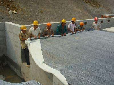 在坡面上,對(duì)土工布的一端進(jìn)行錨固根據(jù)現(xiàn)場(chǎng)情況,土工布廠家確定土工布尺寸,在鋪設(shè)期間使用并保留到鋪...